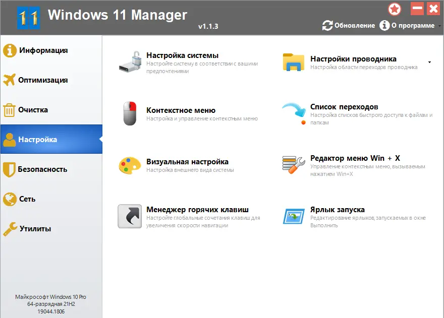 Windows 11 Manager — это многофункциональная утилита, разработанная для оптимизации, настройки и улучшения производительности операционной системы Windows 11. Программа объединяет более сорока инструментов, охватывающих все аспекты системного обслуживания: от очистки реестра до персонализации интерфейса. Она помогает повысить стабильность системы, устранить ошибки и ускорить работу компьютера, оставаясь при этом простой в использовании даже для новичков.