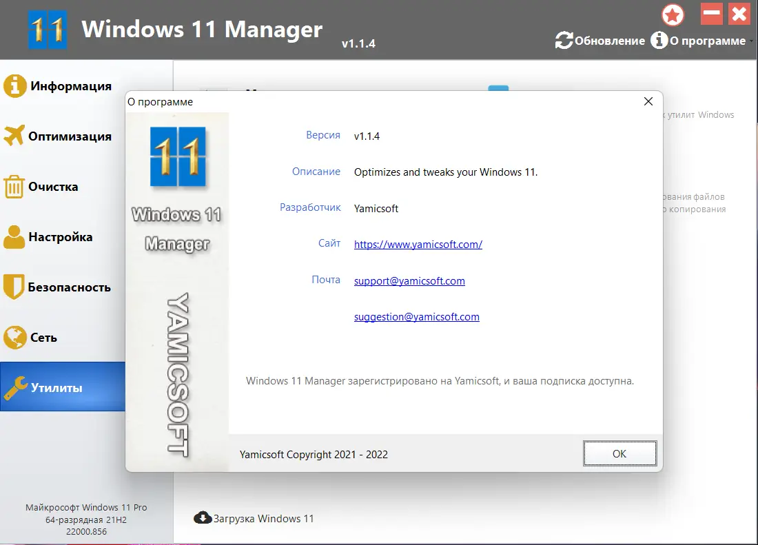- Широкий набор инструментов для полной оптимизации Windows 11