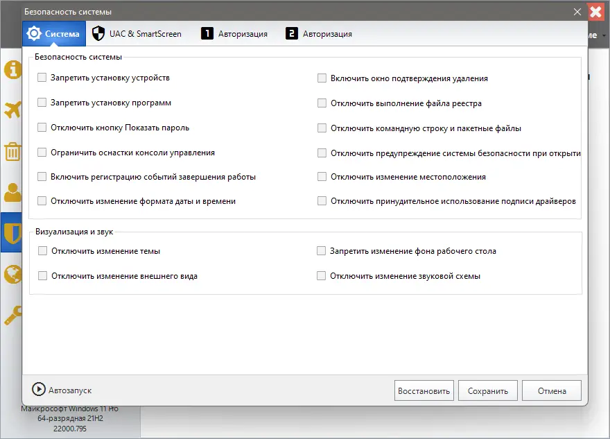 - Повышает безопасность за счёт шифрования файлов, настройки брандмауэра и ограничения доступа к системным компонентам.