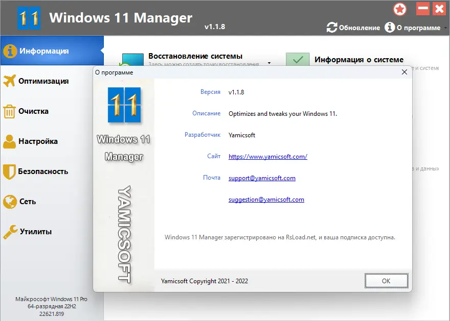 Windows 11 Manager — это комплексный инструмент для настройки, оптимизации и обслуживания операционной системы Windows 11. Программа объединяет более сорока служебных утилит, позволяя ускорить работу системы, повысить её стабильность и безопасность, очистить от ненужных файлов и персонализировать интерфейс под индивидуальные предпочтения пользователя. Подходит как для новичков, так и для опытных пользователей.