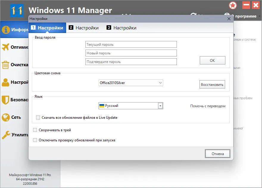 Windows 11 Manager — это комплексная утилита для тонкой настройки, оптимизации и обслуживания операционной системы Windows 11. Программа объединяет более сорока инструментов, позволяя ускорить систему, устранить ошибки, очистить реестр и диски, персонализировать внешний вид и повысить безопасность. Решение подходит как для новичков, так и для опытных пользователей, стремящихся выжать максимум от своей системы.