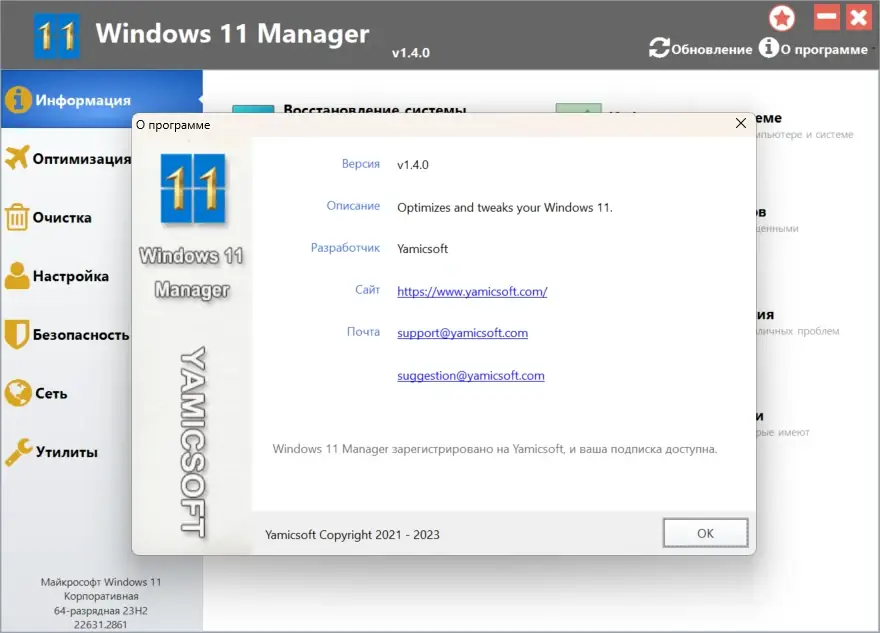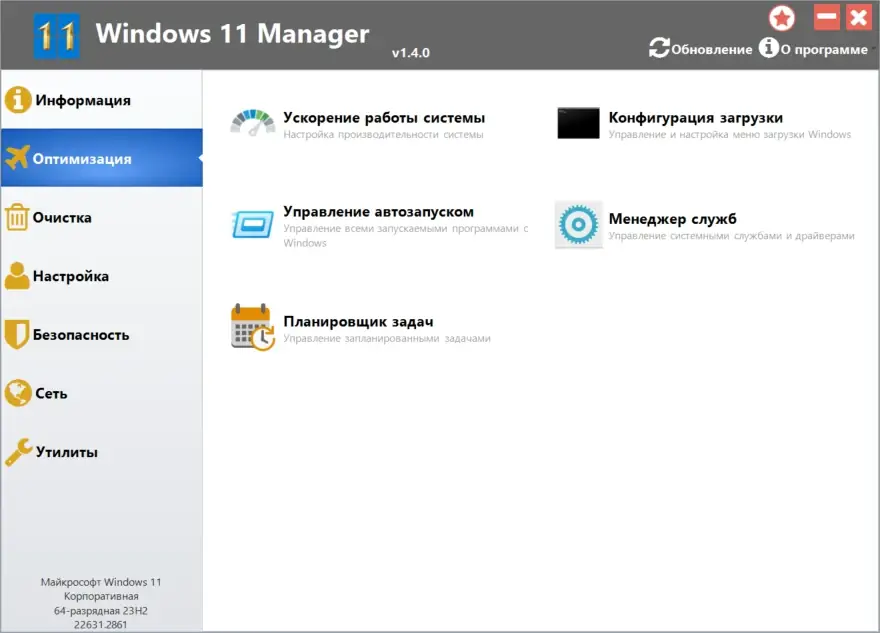 Windows 11 Manager — это комплексное программное обеспечение для глубокой настройки, оптимизации и обслуживания операционной системы Windows 11. Утилита объединяет более сорока инструментов, направленных на повышение производительности, стабильности и безопасности системы. С её помощью можно легко управлять автозагрузкой, очищать реестр, настраивать интерфейс, шифровать файлы и восстанавливать удалённые данные. Программа подойдёт как новичкам, так и опытным пользователям, стремящимся выжать максимум из своей системы.