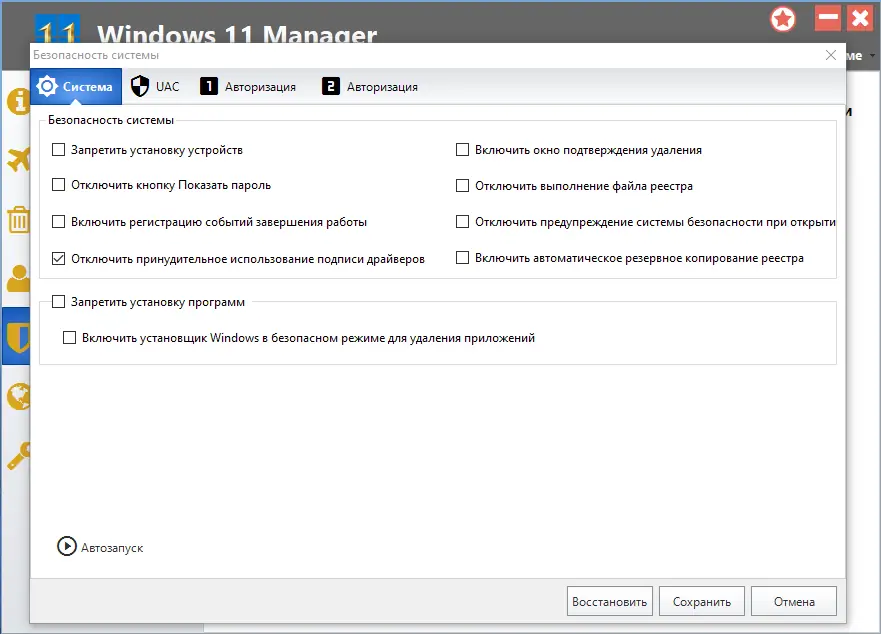 Работа с Windows 11 Manager