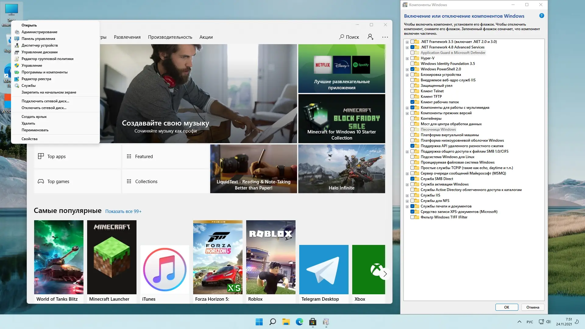 - Оптимизированная система с отключённой телеметрией и лишними компонентами.