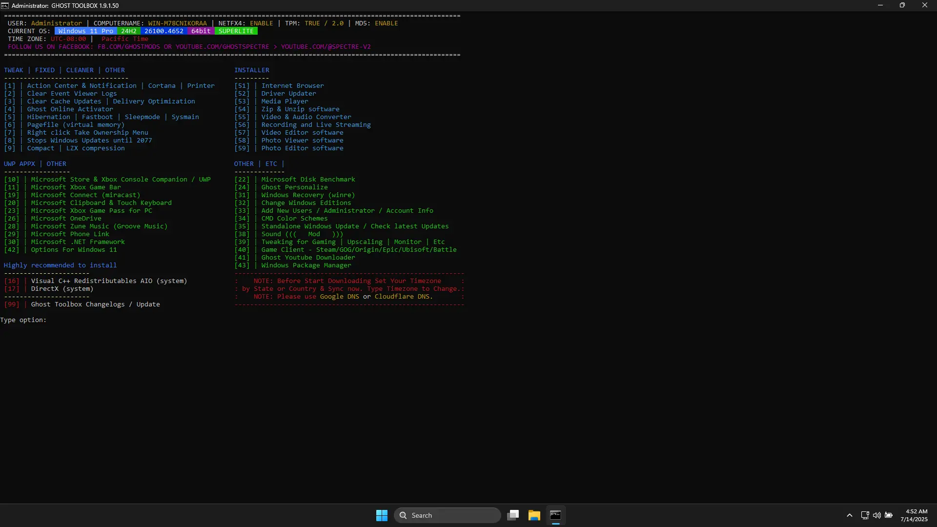 Использование данной версии Windows не требует специальных знаний, но рекомендуется следовать инструкциям для корректной настройки. После установки система готова к работе, однако для русификации необходимо выполнить команды через PowerShell или CMD с подключением к интернету. Поддержка любых языков и раскладок клавиатур реализована на системном уровне. Все изменения, включая включение или отключение компонентов вроде Windows Defender, можно выполнить через Ghost Toolbox — инструмент, поставляемый в комплекте. Важно вносить изменения сразу после установки, до любых других манипуляций с системой, чтобы избежать конфликтов. Также доступна поддержка UWP-приложений и игр, включая эксклюзивы от Xbox Game Pass.