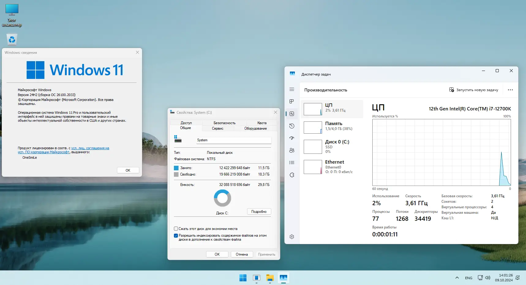 Сборка предлагает значительные улучшения в скорости запуска и отзывчивости системы. За счёт удаления фоновых служб и приложений ресурсы компьютера используются эффективнее. Отключение зарезервированного хранилища освобождает место на диске, а отключение контроля учётных записей упрощает выполнение административных задач. При этом пользователь получает полный контроль над системой, включая доступ к реестру, диспетчеру устройств и конфигурации системы через контекстное меню «Этот компьютер».