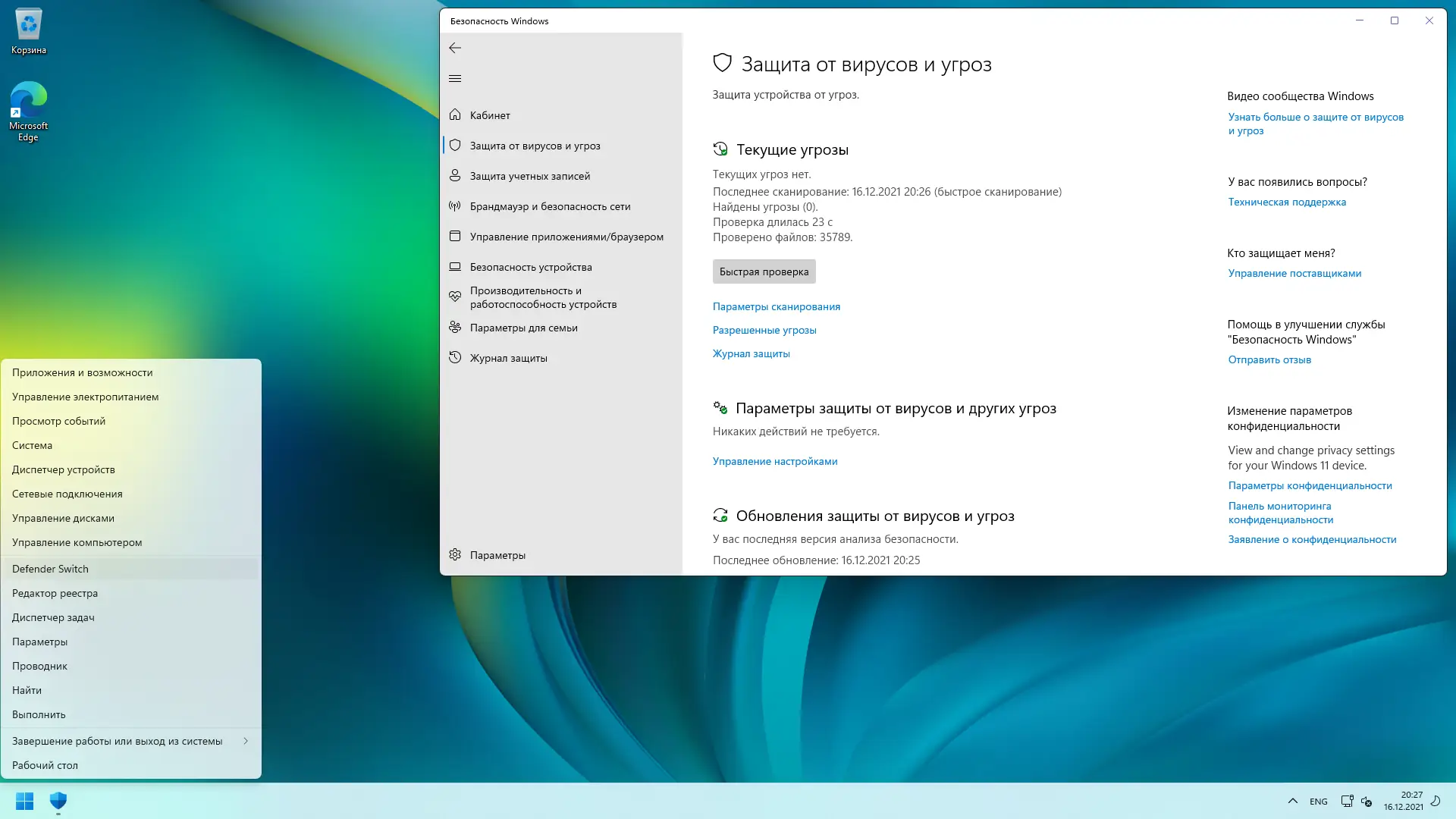 После установки пользователь получает полностью функциональную операционную среду с предварительно настроенными параметрами. Учётная запись с именем User создаётся автоматически, что упрощает первый вход. Через меню WinX доступен переключатель защитника — Defender Switch, позволяющий включать и отключать антивирусную защиту без перезагрузки. Контекстное меню приведено к классическому виду, как в более ранних версиях, а в меню «Пуск» добавлены быстрые ссылки на редактор реестра и управление защитой. При подключении к интернету можно установить магазин приложений с помощью команды wsreset -i в PowerShell от имени администратора. После этого становится доступна установка Xbox через соответствующие компоненты: Identity Provider, Game Bar и основное приложение. Все обновления системы будут устанавливаться в обычном режиме, как в оригинальной сборке.