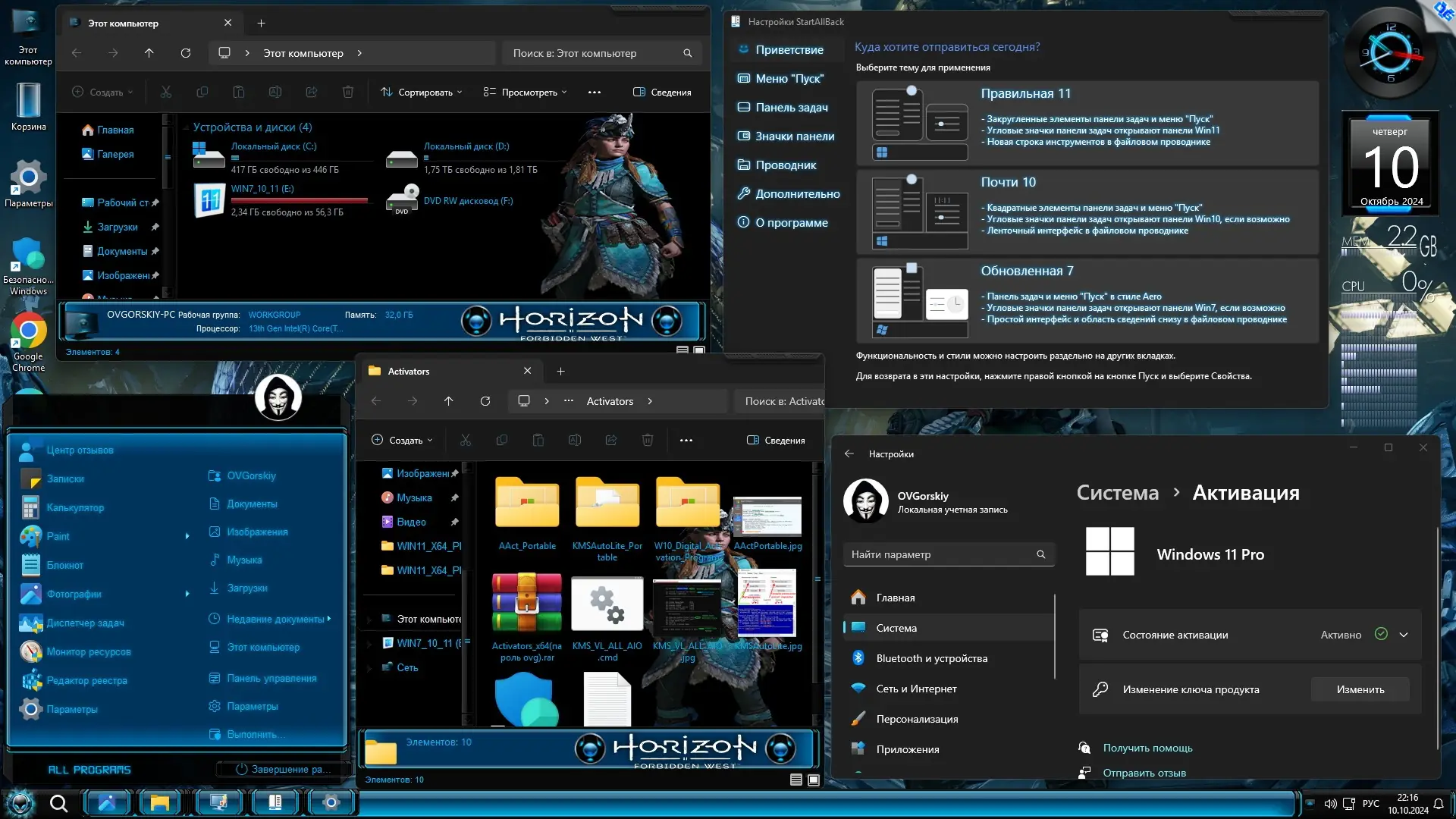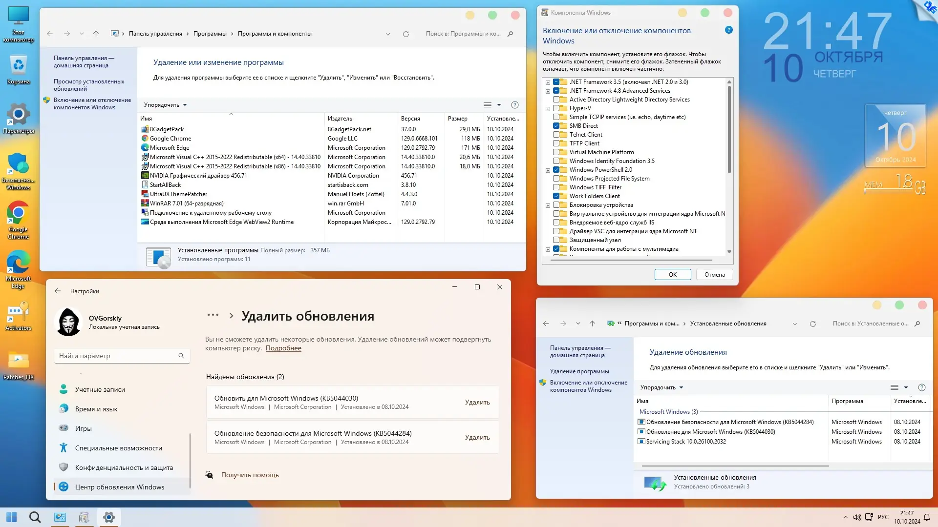 После установки система готова к использованию. Все основные компоненты, включая браузеры Microsoft Edge и Google Chrome, работают без дополнительной настройки. StartAllBack автоматически настраивает интерфейс под выбранный стиль — можно выбрать внешний вид, напоминающий 11, 10 или даже 7 версию операционной системы. Дополнительные твики, такие как отключение UAC, SmartScreen и защитника Windows, применяются для беспроблемной активации. Пользователь может вернуть любые функции через патчи из папки Patches_FIX на рабочем столе. Все изменения в реестре открыты и доступны для просмотра, что исключает скрытые риски. Удобные контекстные меню, отображение скрытых файлов и расширений, а также быстрый доступ к настройкам делают повседневную работу более продуктивной. Настройка персонализации и выбор темы не займут много времени благодаря заранее добавленным изображениям и темам.