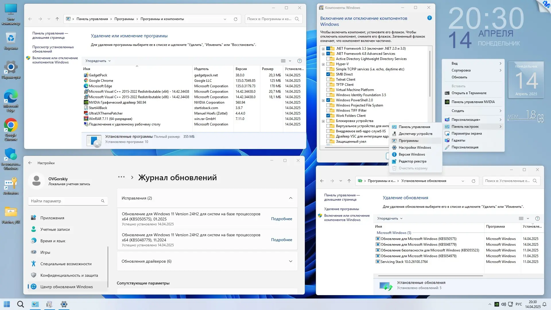 Операционная система Windows 11 представлена в виде профессиональной версии с 64-битной архитектурой, основанной на оригинальном образе Microsoft MSDN. Версия 24H2 включает все накопительные обновления по апрель 2025 года, а также компоненты .NET Framework. Сборка предназначена для тех, кто ищет стабильную, гибко настраиваемую систему с возможностью установки на несовместимое оборудование. Она идеально подходит как для настольных компьютеров, так и для ноутбуков, обеспечивая высокую производительность и совместимость с современным программным обеспечением. В систему интегрированы компоненты, расширяющие функциональность: возможность применения сторонних тем, восстановление классического меню «Пуск» и установка гаджетов на рабочий стол.