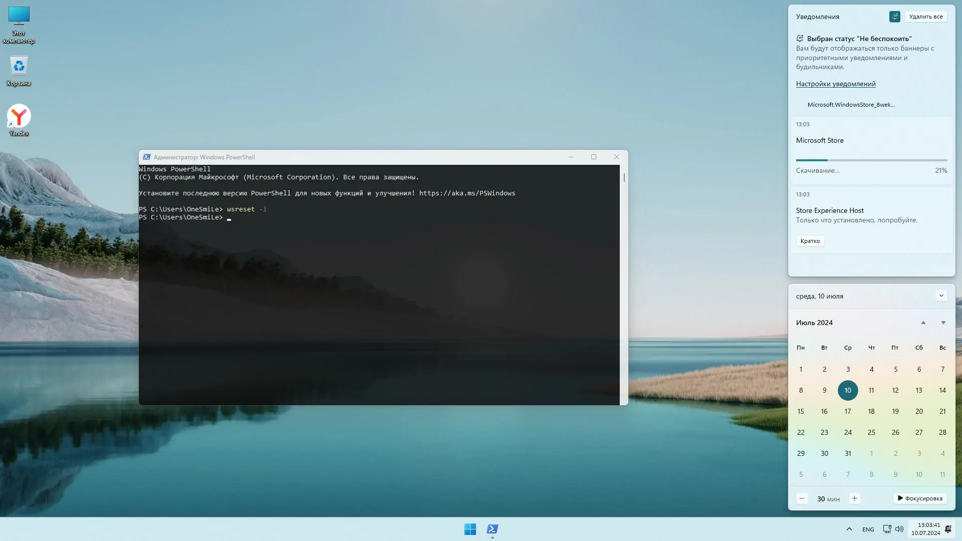 После установки система готова к использованию без дополнительных настроек. Все изменения уже применены, включая замену шрифта на Segoe UI Semibold, включение классического контекстного меню и отключение размытия на экране блокировки. Для установки Microsoft Store и Xbox требуется подключение к интернету и выполнение команды wsreset -i в PowerShell с правами администратора. После этого магазин приложений загрузится автоматически, а через него можно будет установить и Xbox, включая Game Bar и Identity Provider.