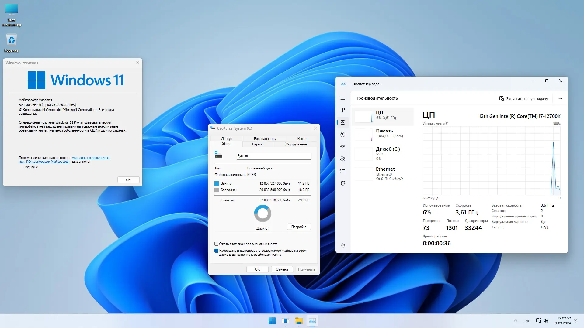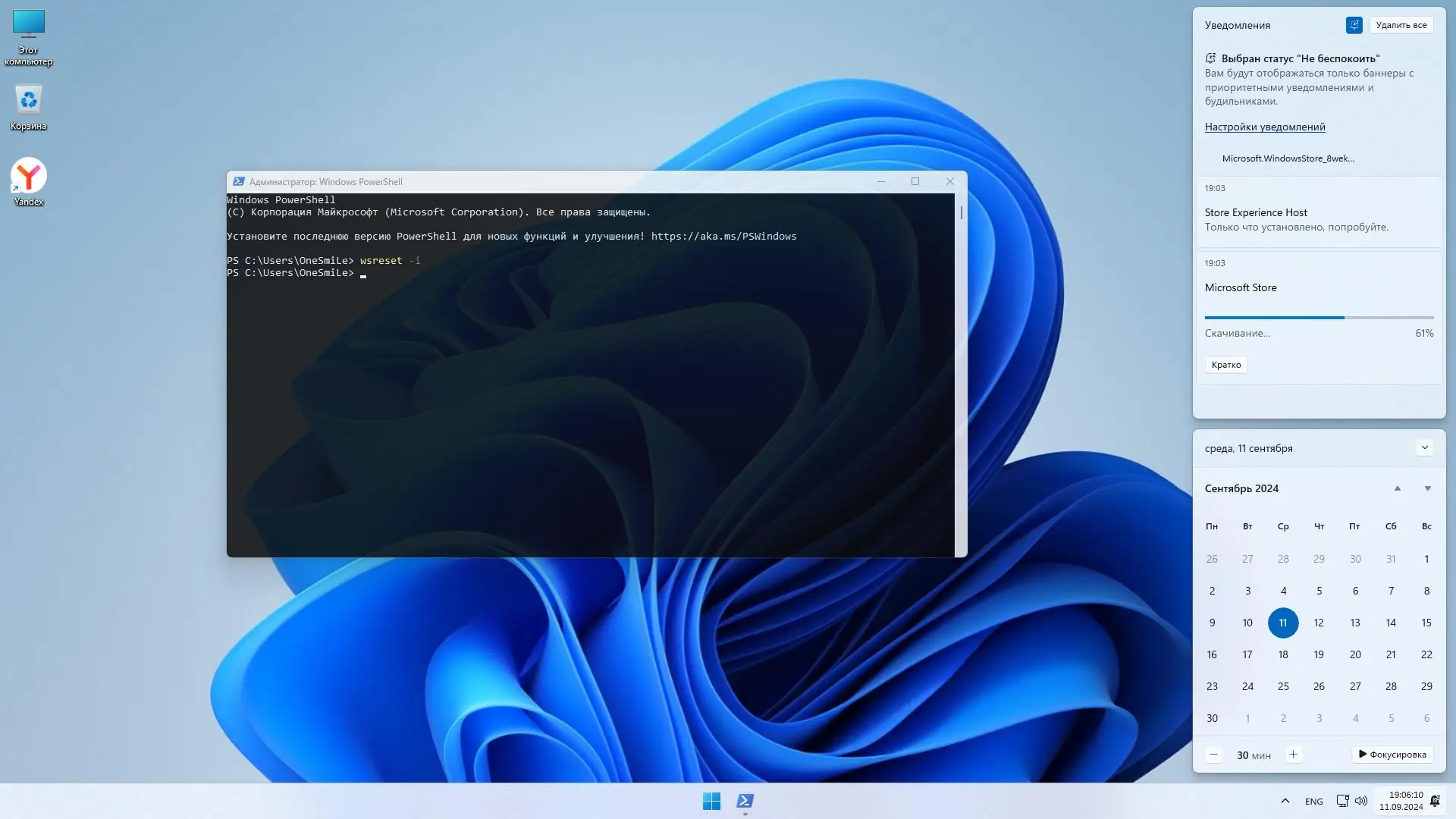 После установки система готова к использованию: интерфейс соответствует классическому стилю, шрифт изменён на Segoe UI Semibold для лучшей читаемости, а стандартный просмотрщик фотографий возвращён как основной. Поиск в системе работает, хотя значок скрыт — его можно активировать при необходимости. Управление параметрами осуществляется через стандартные средства, включая редактор реестра и диспетчер устройств, доступ к которым добавлен в контекстное меню «Этот компьютер». Автоматическая перезагрузка при сбоях отключена, что позволяет анализировать ошибки. Для установки магазина и Xbox используется команда wsreset -i в PowerShell с правами администратора, после чего компоненты загружаются автоматически. Активация возможна как на этапе установки, так и позже через параметры системы.