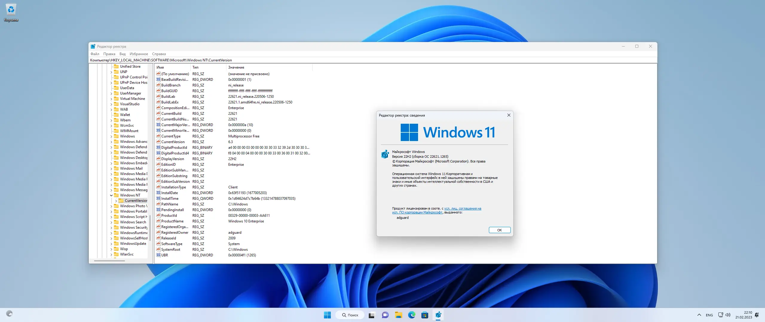 - Образы основаны на сборке 10.0.22621 с обновлениями от февраля 2023 года.