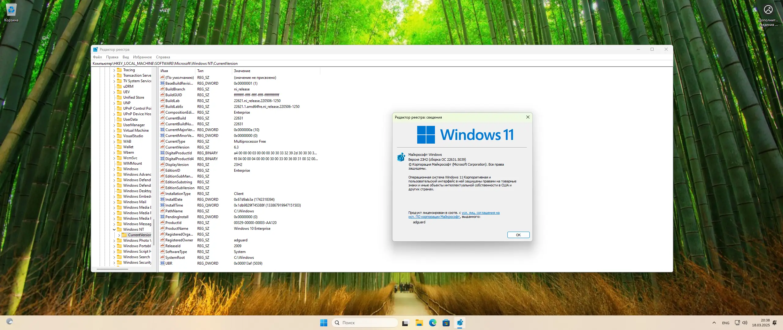 - Версия 23H2 включает все накопленные обновления по март 2025 года и основана на сборке 22631.5039, что гарантирует стабильность и актуальность компонентов.