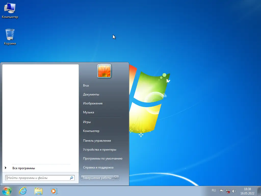 - На рабочем столе присутствует ярлык «Компьютер» для удобного доступа к дискам и устройствам.