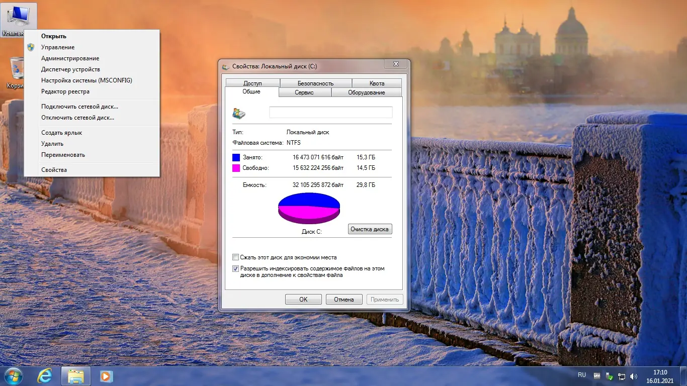 - В меню «Этот компьютер» включены быстрые ссылки на диспетчер устройств, реестр, администрирование и настройку системы.