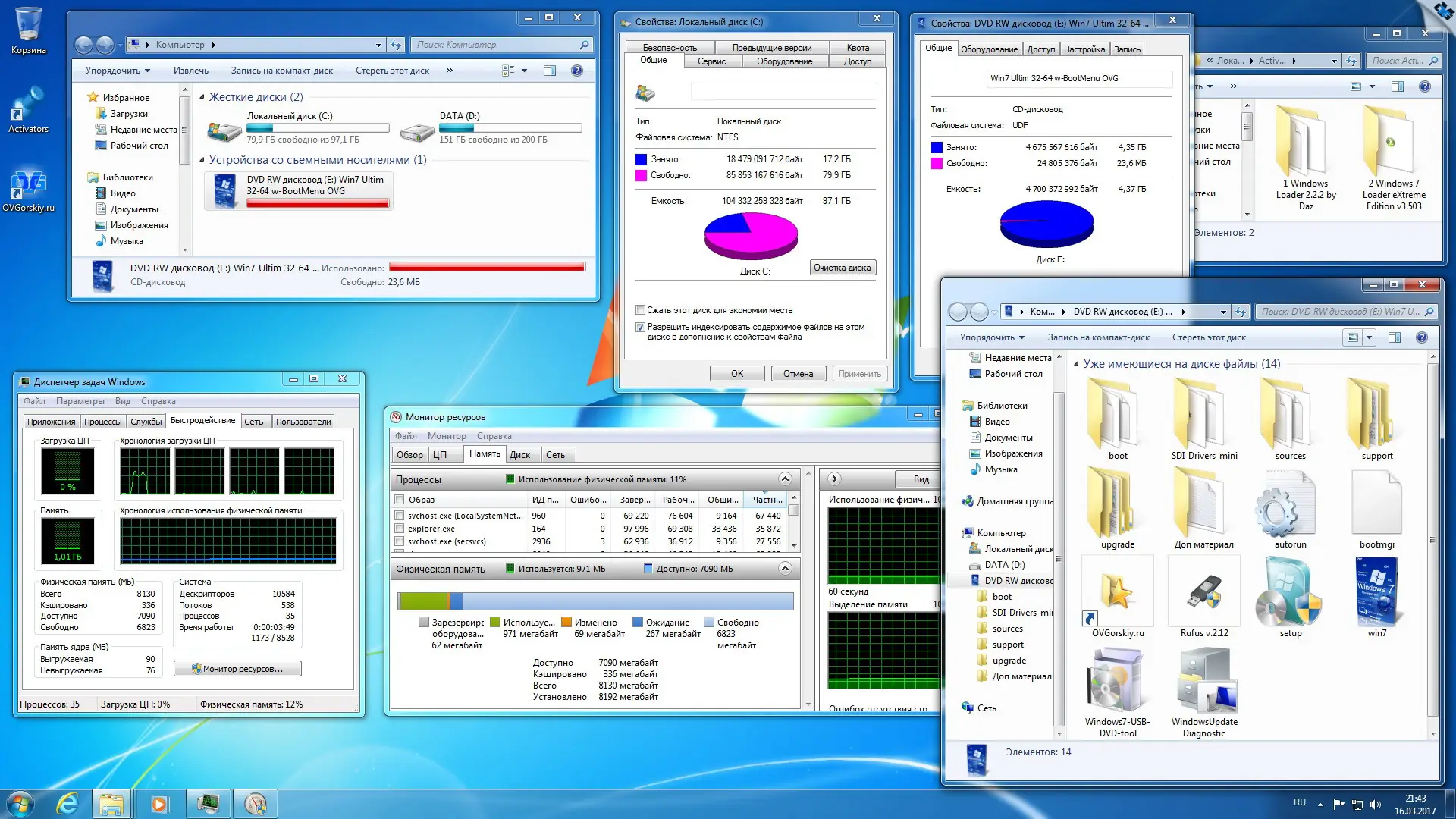 - Сборка основана на лицензионных образах ru_windows_7_ultimate_with_sp1_x86_dvd_u_677463.iso и ru_windows_7_ultimate_with_sp1_x64_dvd_u_677391.iso.