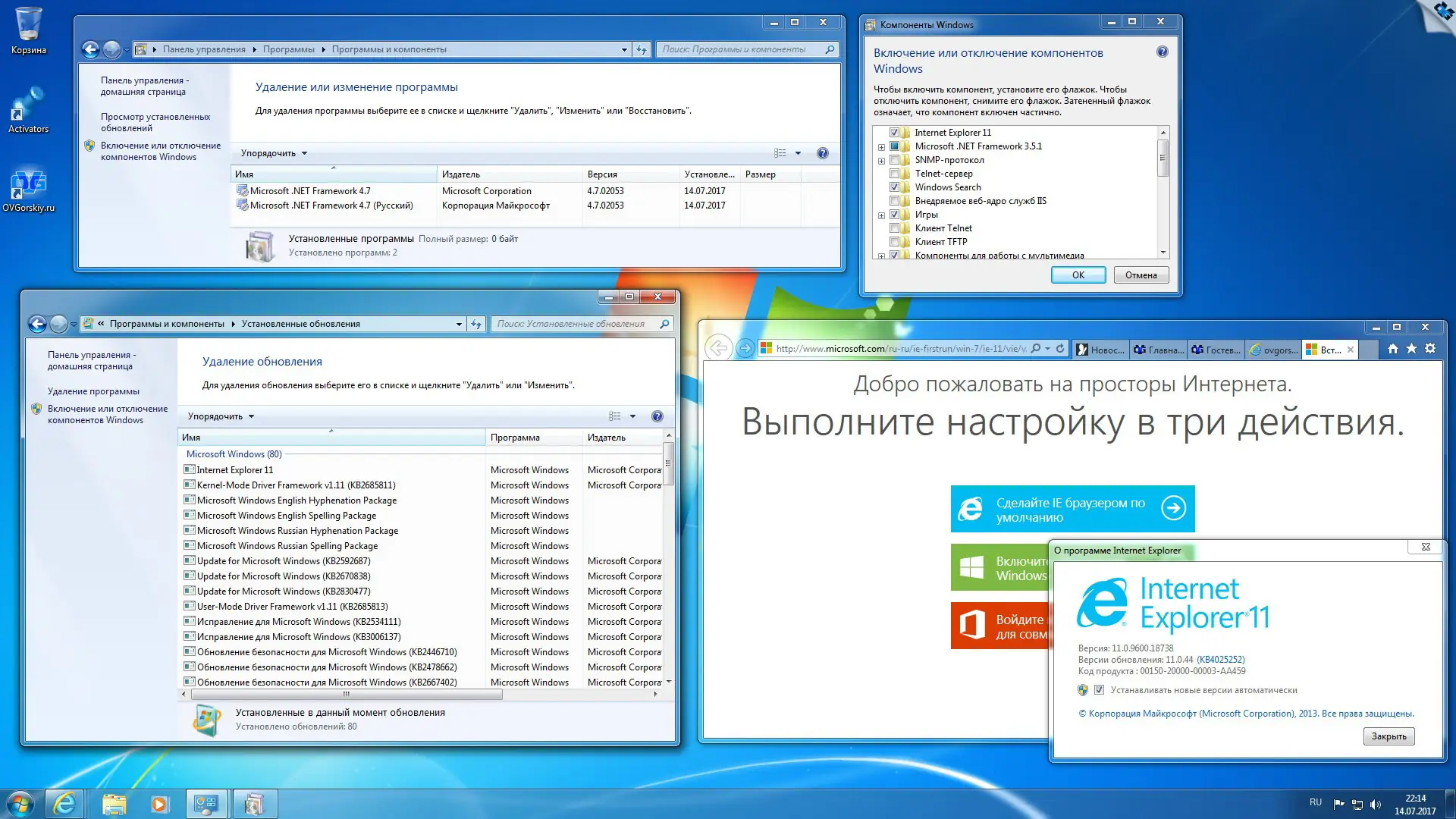- Присутствует Internet Explorer 11 с актуальными исправлениями для обеих разрядностей.