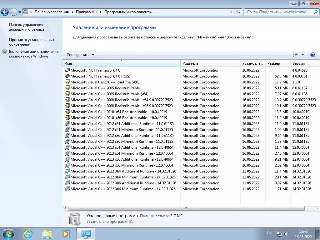 - Установлены .NET Framework 3.5 и 4.8 для запуска современных приложений