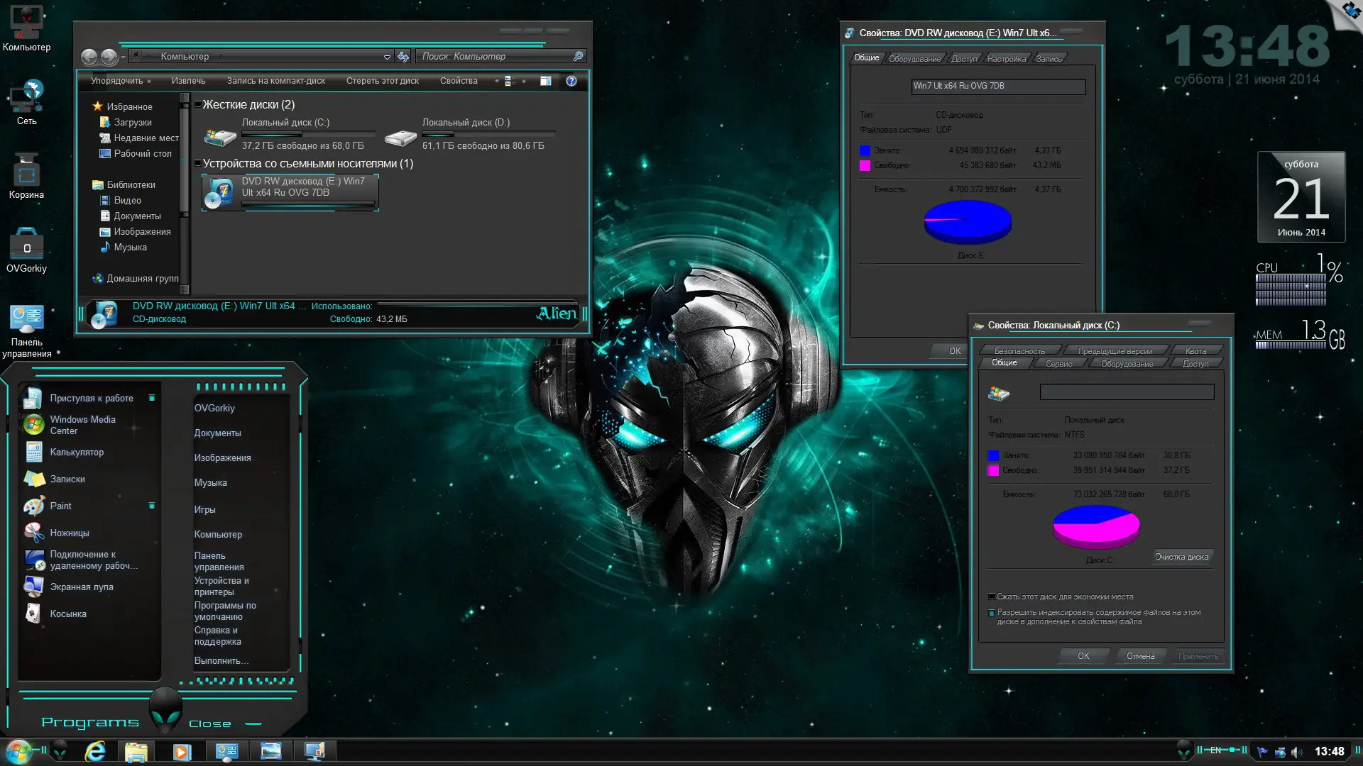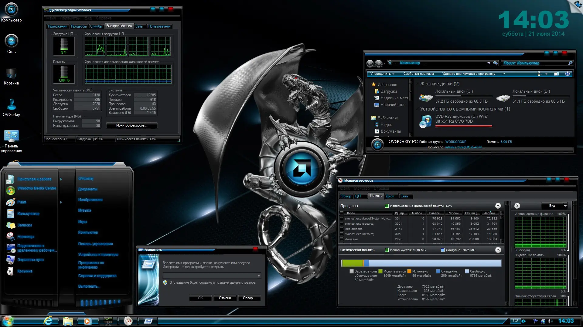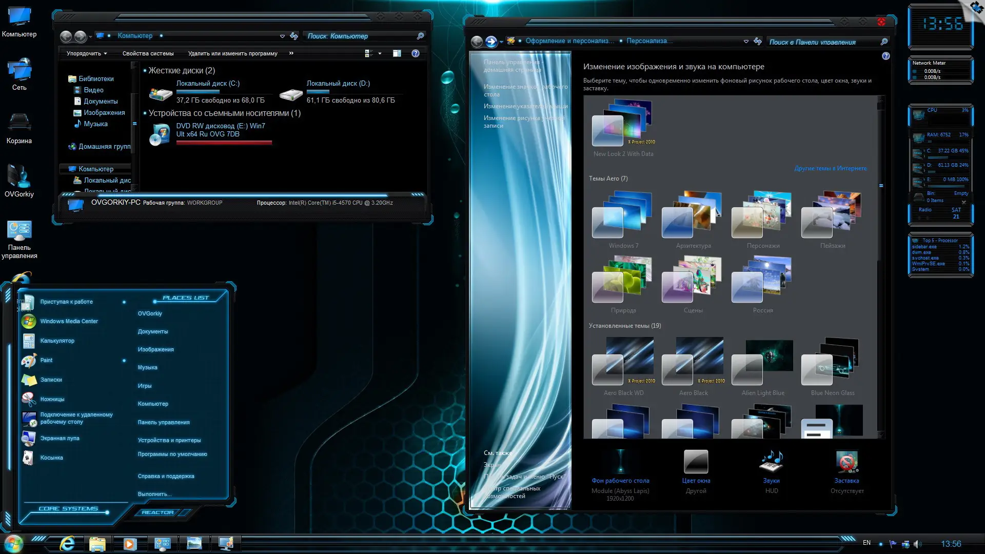 После установки система готова к использованию: все драйверы, обновления и приложения уже интегрированы. Пользователь получает доступ к настроенному интерфейсу с отображением основных ярлыков на рабочем столе — «Мой компьютер», «Панель управления», «Internet Explorer». В меню «Пуск» возвращена команда «Выполнить», а в контекстное меню добавлены функции открытия файлов в блокноте и быстрого копирования. Отключён UAC, что упрощает выполнение административных задач, а сетевое окружение настроено в режиме «Домашняя группа». Автоматическое обновление отключено, но может быть включено вручную при необходимости. Региональные параметры установлены по умолчанию на русский язык и временную зону Москвы. Для восстановления стандартного вида можно удалить тему Se7en Dark-Blue, воспользовавшись резервными файлами, сохранёнными в папке W7P_Backups.