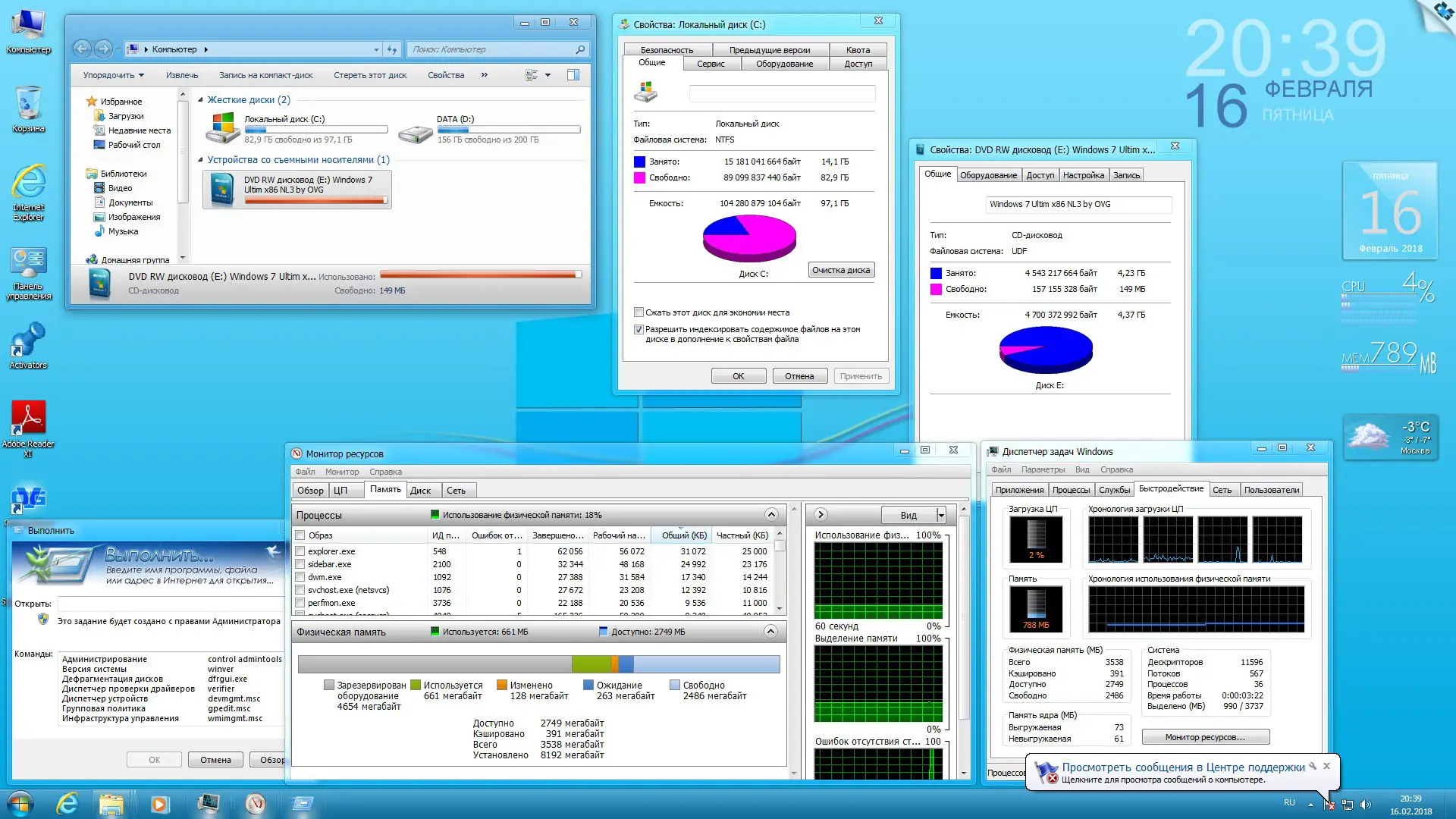 - Предустановленный пакет программ: WinRAR, Adobe Reader, Java, .NET Framework 4.7.1 и другие.