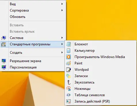 - Для удобства пользователя изменено контекстное меню рабочего стола — добавлены разделы «Стандартные программы» и «Система».
