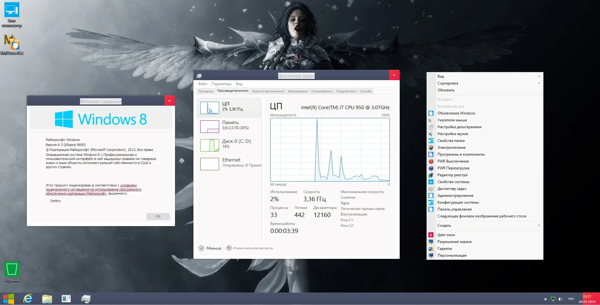Данная сборка основана на официальном образе ru_windows_8_1_pro_vl_x64_dvd_2972044 с добавлением всех доступных на момент создания обновлений. После завершения установки и подключения к интернету система позволяет дополнительно обновить компоненты через центр обновления. Благодаря патчу UltraUXThemePatcher 2.2 пользователь может использовать кастомные темы оформления, изменяя внешний вид системы без ограничений.