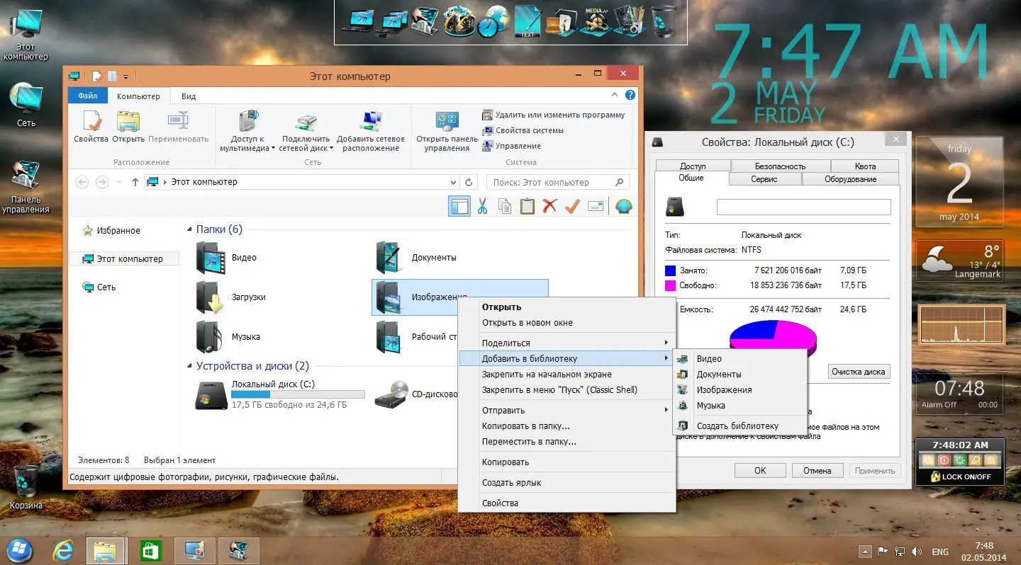 После установки система готова к использованию — все необходимые компоненты уже интегрированы. Пользователь может сразу приступать к настройке интерфейса, подключению к сети и установке дополнительного ПО. Для активации достаточно запустить KMSAuto Net 2014 из папки BONUS и нажать кнопку «Активировать». Расширенное контекстное меню позволяет быстро перемещать или копировать файлы без необходимости открывать проводник. Также доступны альтернативные варианты кнопки «Пуск», которые можно установить по желанию.