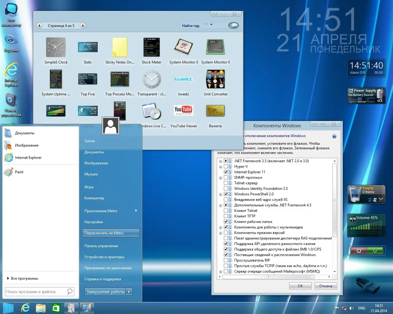 - Интегрировано около 30 гаджетов рабочего стола для расширения функциональности.