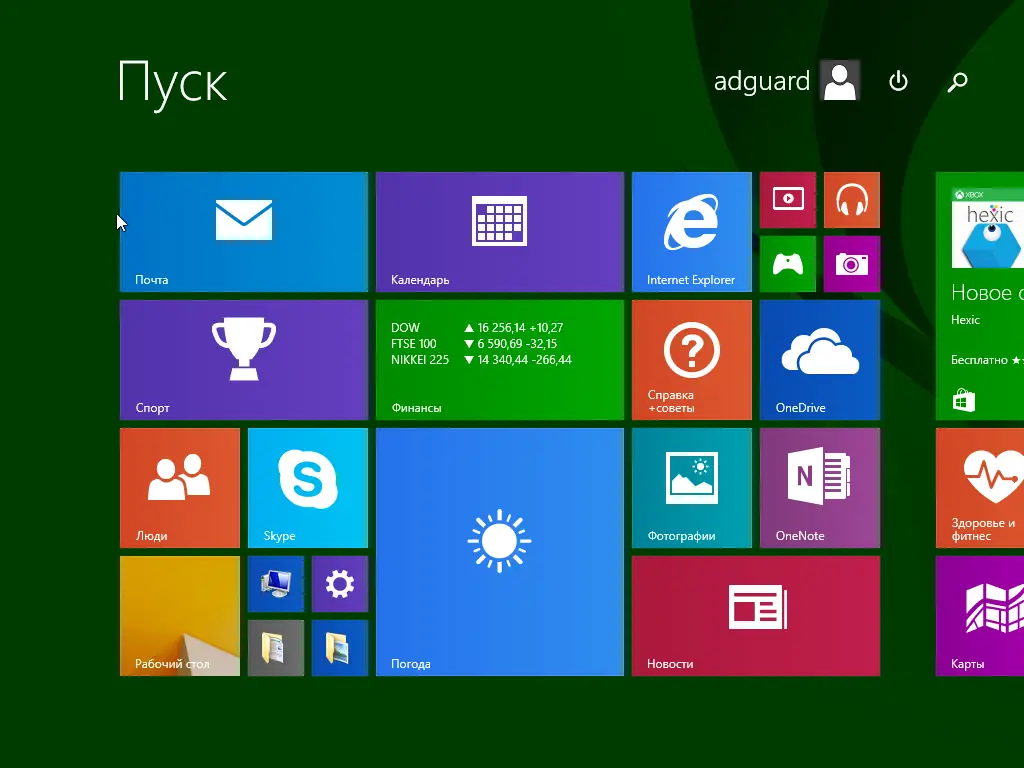- Начальный экран настраивается под нужды пользователя: можно изменять размеры плиток, группировать их и закреплять важные приложения.