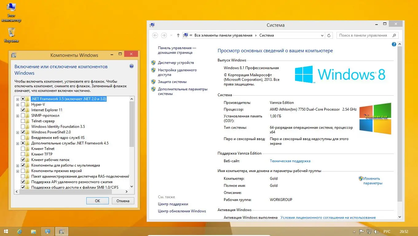 - Предустановлен Microsoft .NET Framework 3.5 для поддержки устаревших и современных приложений