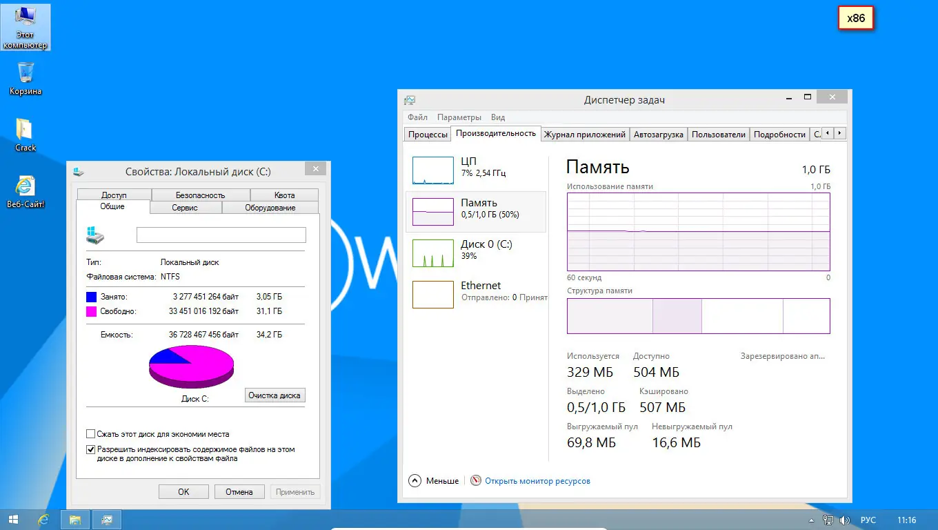 - Удалены ненужные компоненты: Магазин, SkyDrive, Metro-интерфейс, Справка, языки и шрифты.