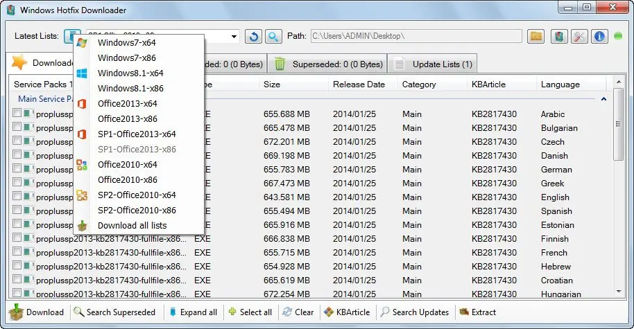 Небольшая бесплатная утилита Hotfix Downloader предназначена для загрузки обновлений Windows 7, 8, 8.1 и Office 2013, а также Microsoft Runtimes для 32- и 64-битных систем. Программа автоматизирует процесс сбора патчей, упрощая подготовку к созданию интегрированных установочных образов.