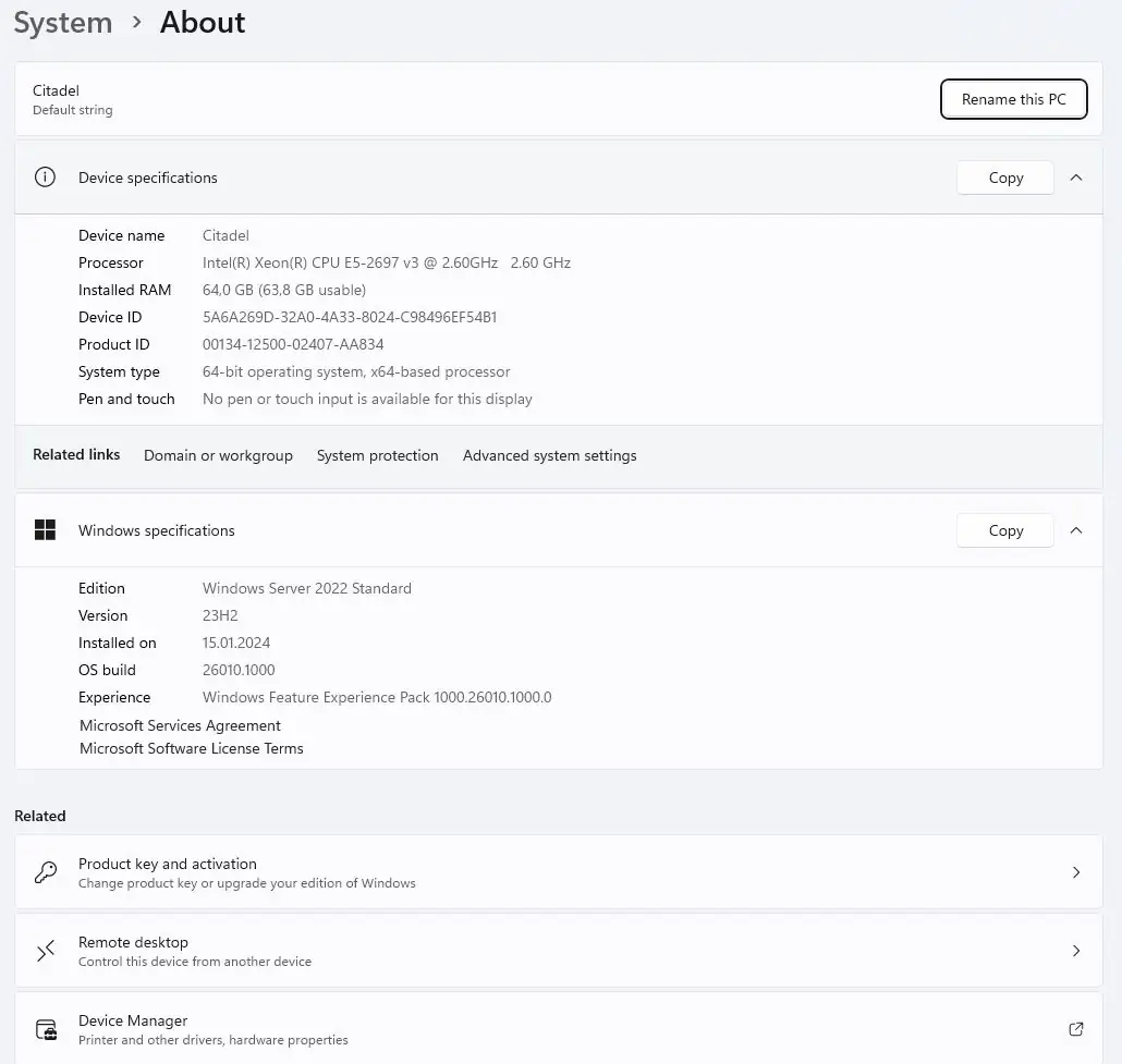- Требует значительных аппаратных ресурсов, особенно при активном использовании виртуализации и служб безопасности.