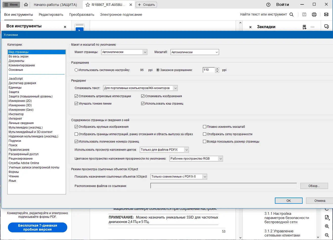 - Некоторые расширенные функции требуют подписки на платные сервисы Adobe Document Cloud.