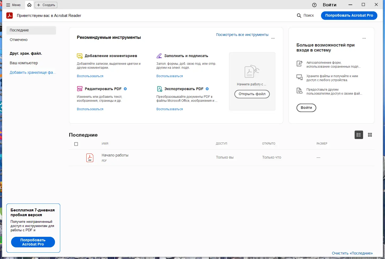 Adobe Acrobat Reader — это надежное приложение для работы с PDF-документами на компьютере и мобильных устройствах. Программа позволяет просматривать, редактировать, подписывать и конвертировать файлы, обеспечивая высокий уровень совместимости и удобства. Благодаря интеграции с облачными сервисами, пользователи получают доступ к своим документам в любое время и с любого устройства. Это универсальное решение для повседневной работы с важными файлами.