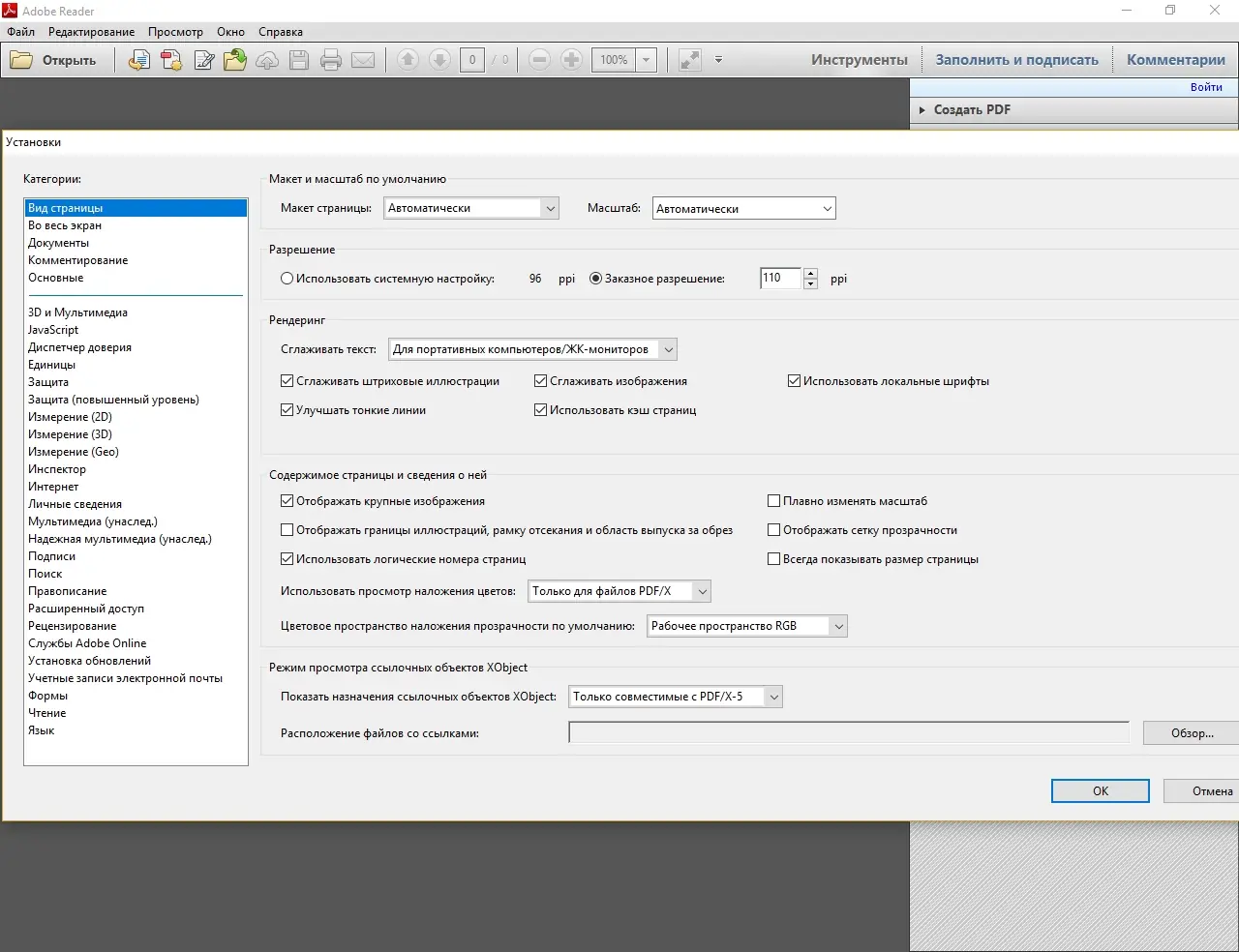 Работа с Adobe Reader