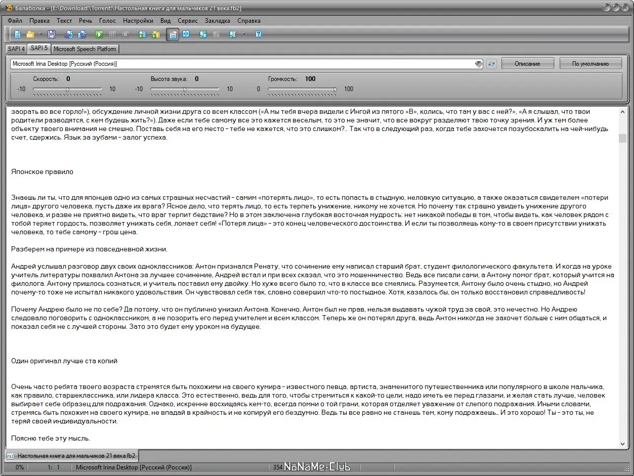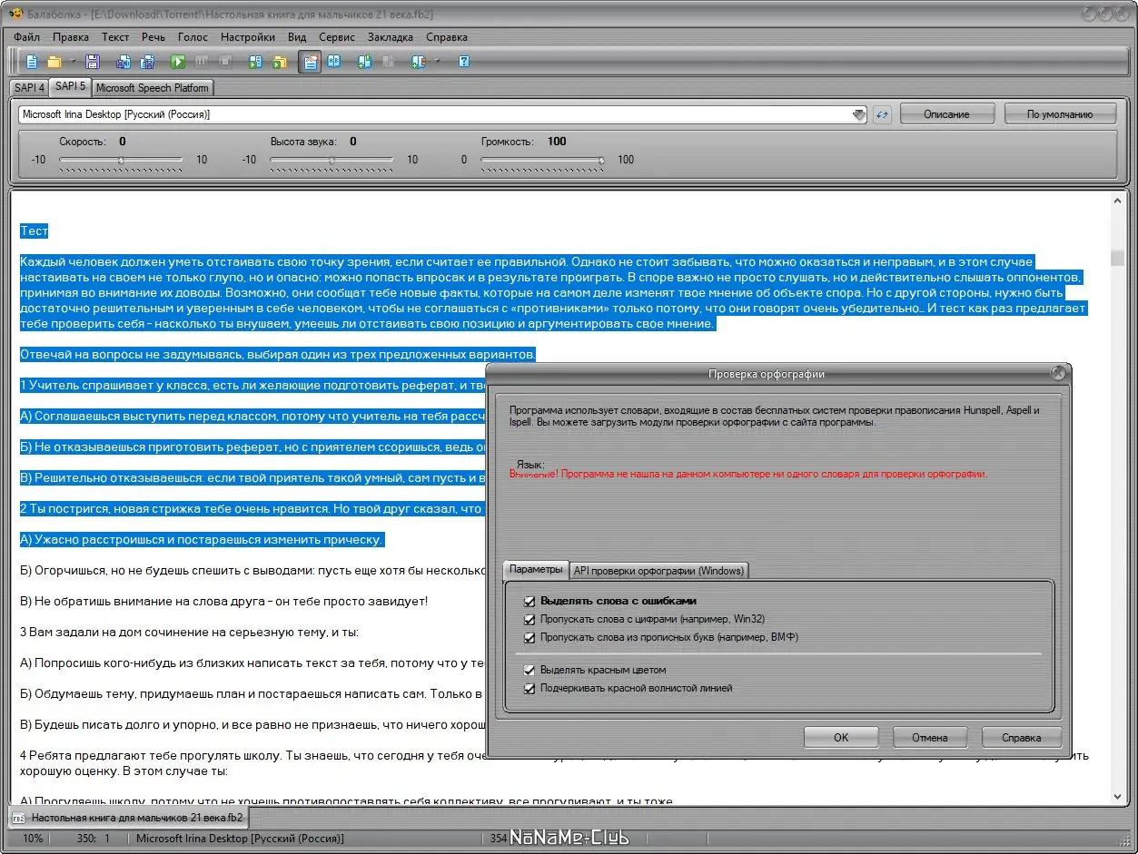 - Для полноценной работы требуется предварительная установка качественных голосов, так как базовые поставляются не со всеми версиями Windows.
