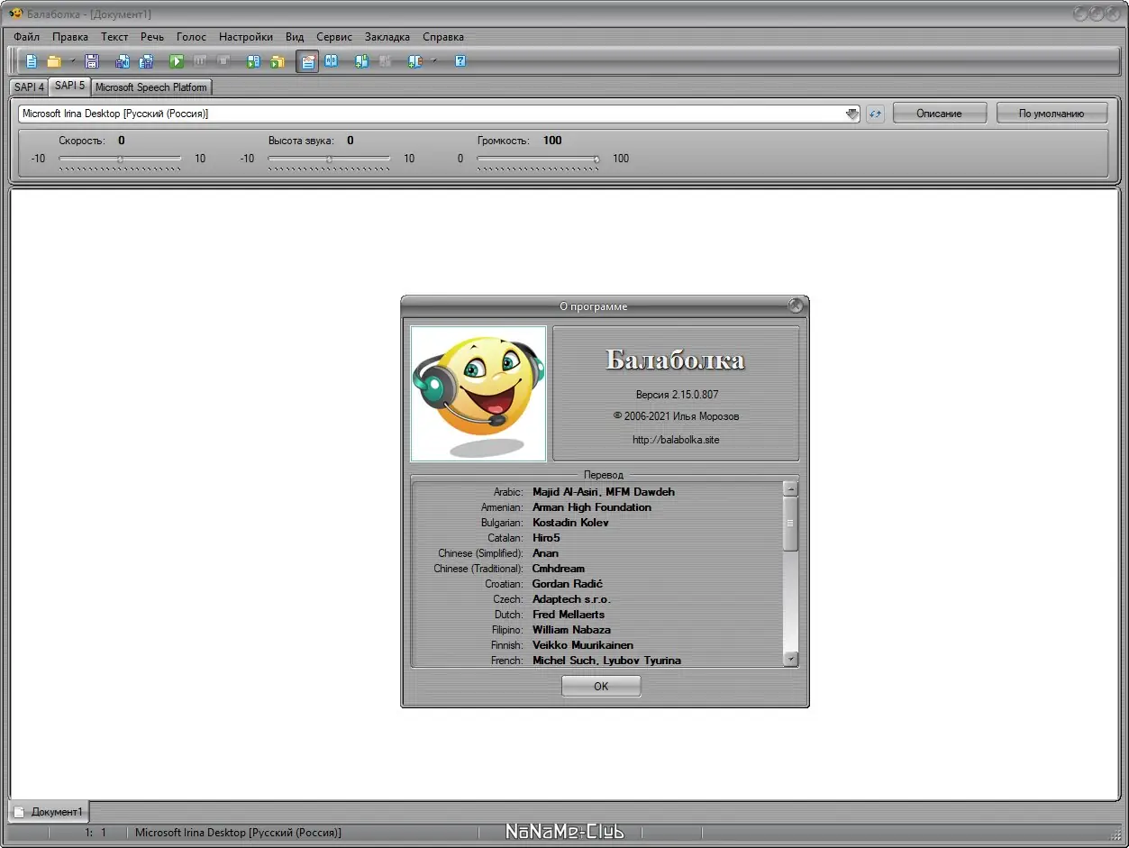 Программа Balabolka преобразует текстовые файлы в устную речь, используя установленные на компьютере синтезаторы голоса. Поддерживает множество форматов документов и аудиофайлов, позволяет сохранять озвученные записи и настраивать параметры воспроизведения. Идеальное решение для чтения книг, подготовки аудиоматериалов и помощи людям с нарушениями зрения.