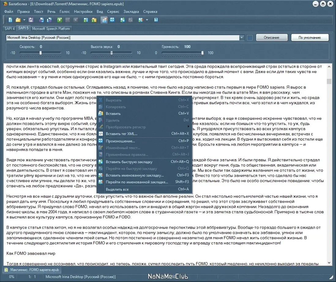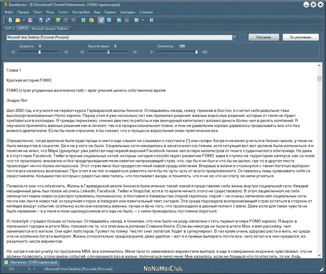 Программа сочетает функциональность читалки и конвертера текста в речь, обеспечивая гибкость в работе с документами.