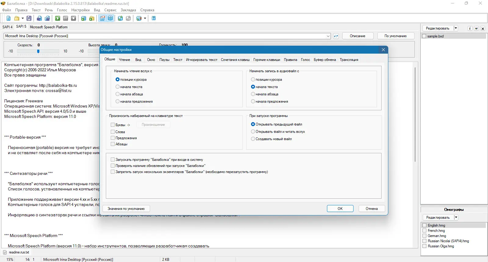Работа с Balabolka