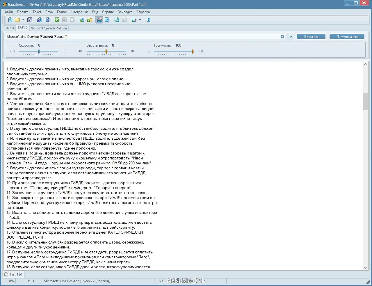 Balabolka — это программа для озвучки текста с использованием встроенных голосовых синтезаторов, которая поддерживает множество форматов документов и позволяет конвертировать текст в аудиофайлы различных типов, включая MP3 и WAV. Приложение работает на базе технологии текст-в-речь и совместимо с различными версиями Microsoft Speech API. Подходит для пользователей, которым необходимо прослушивать книги, статьи или рабочие документы без напряжения глаз.