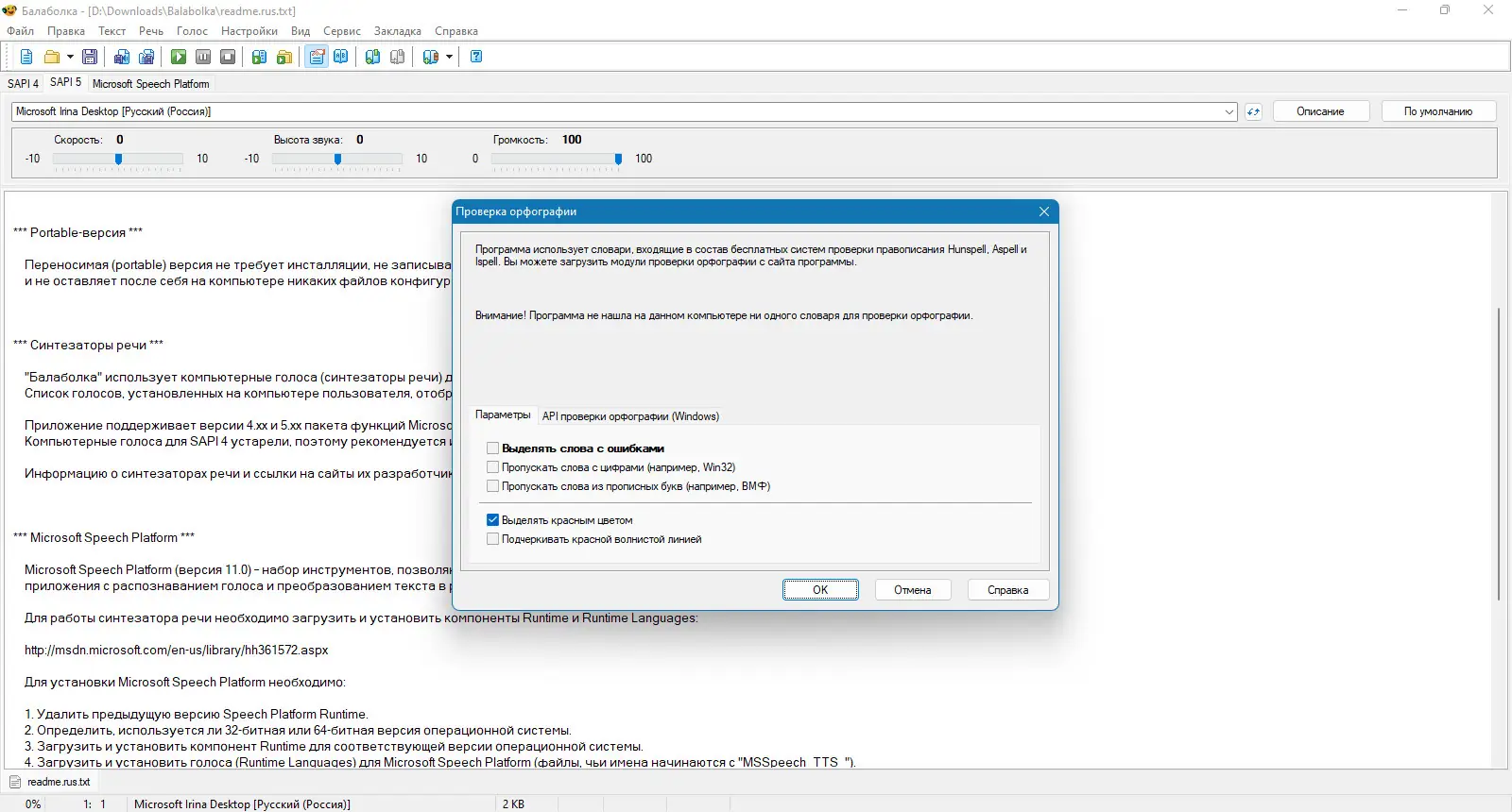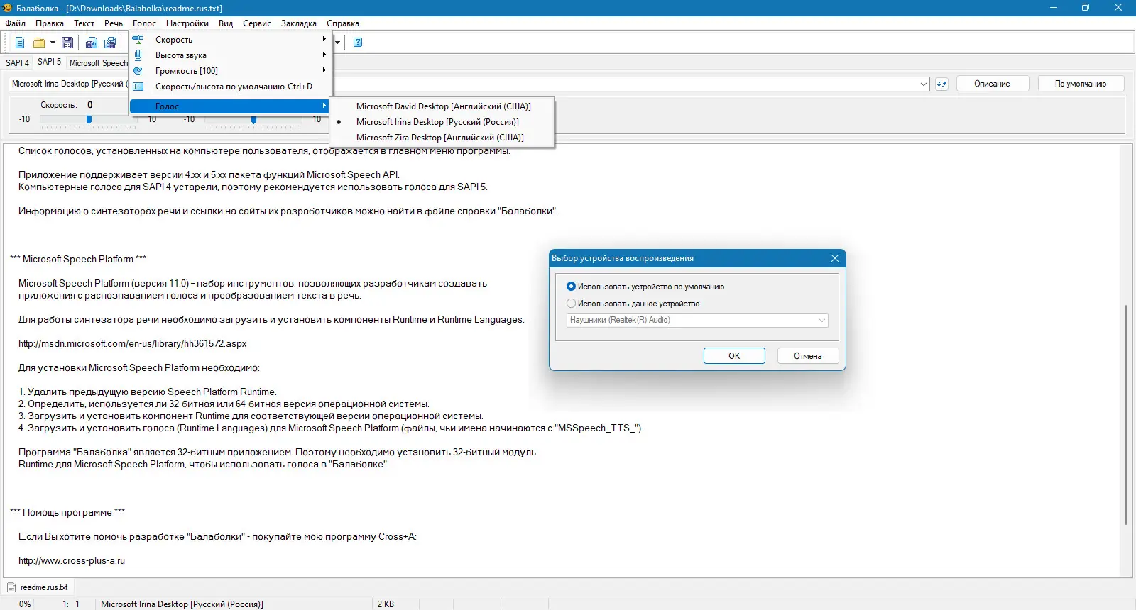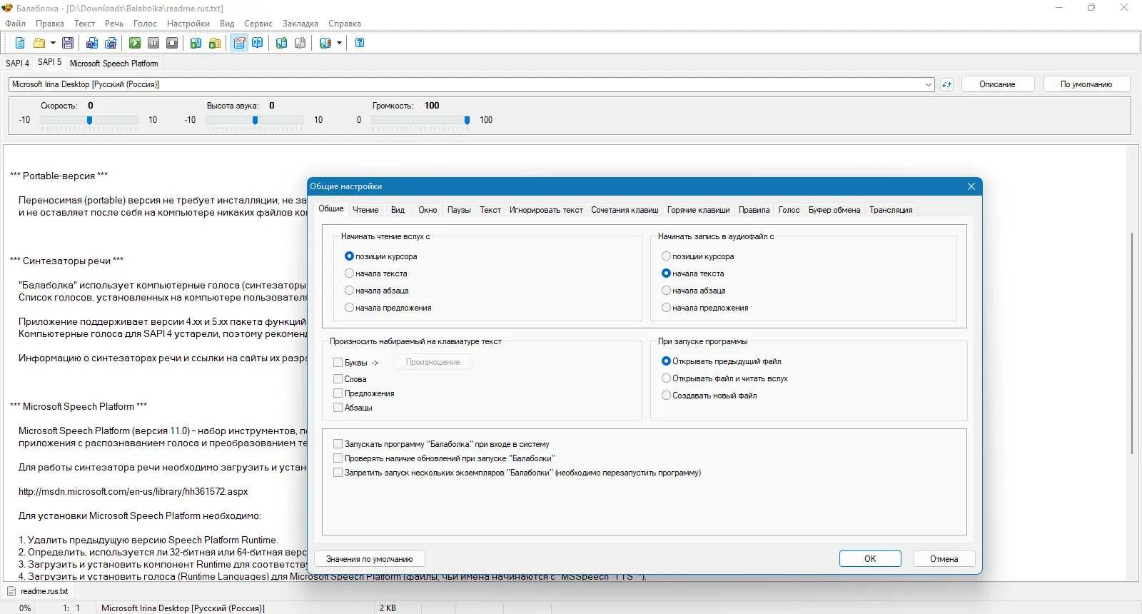 Работа с Balabolka