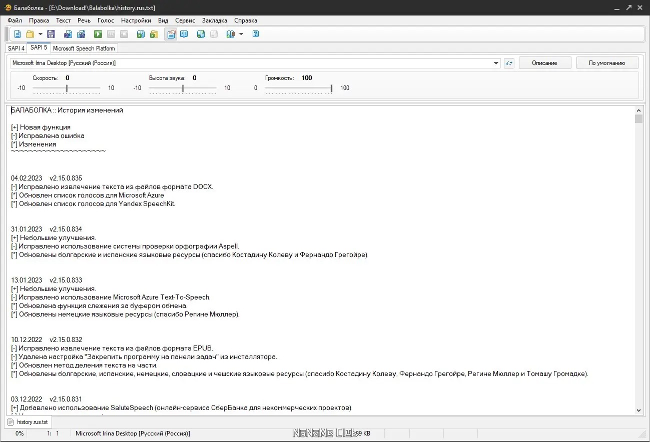 Программа Balabolka — это мощный инструмент для озвучки текста с использованием доступных голосов синтезаторов. Она поддерживает множество форматов документов и позволяет сохранять результат в аудиофайлы, включая MP3 и WAV.