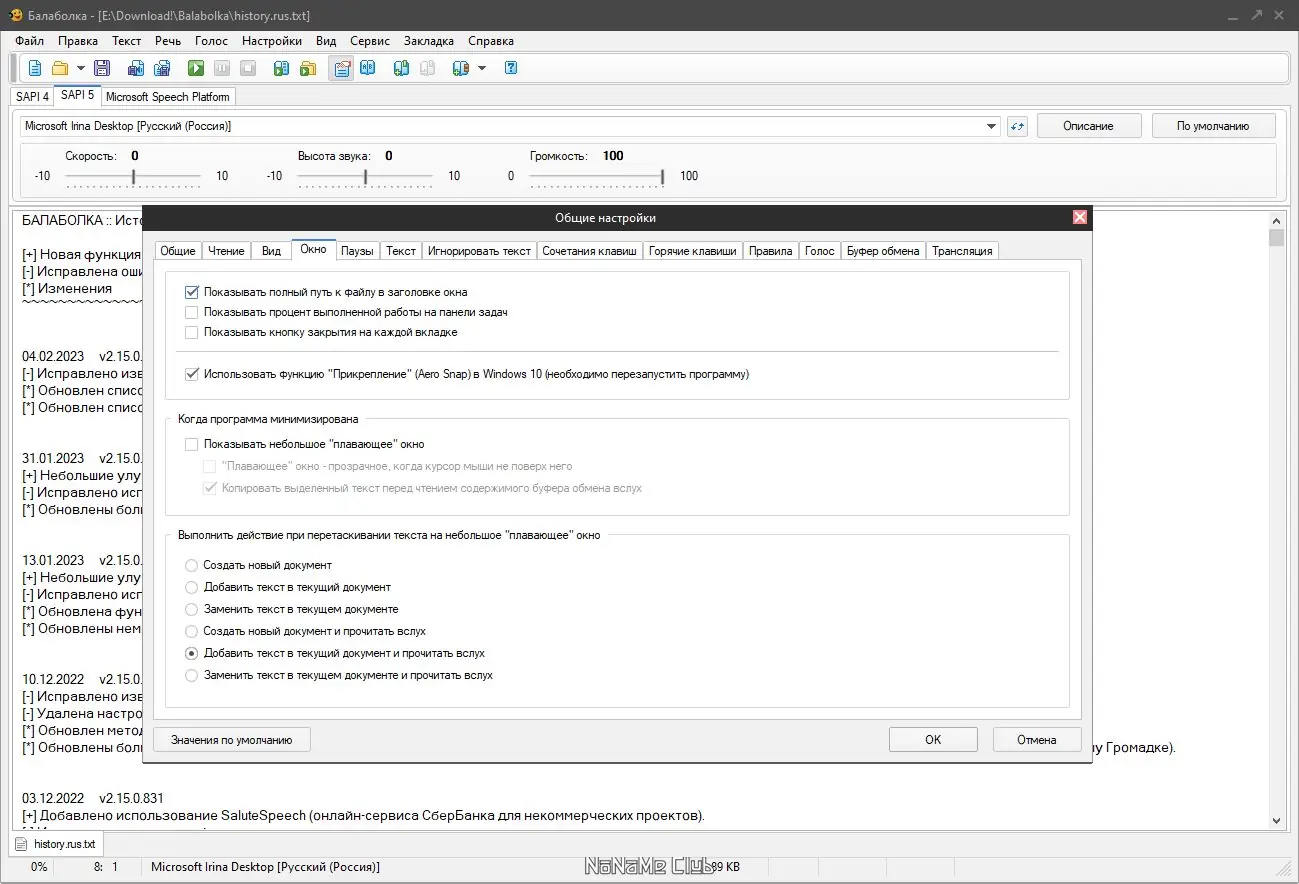 Работа с Balabolka