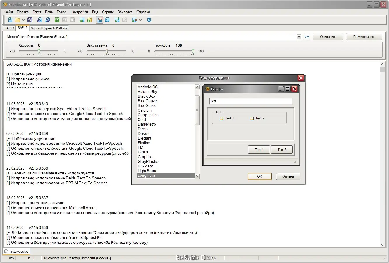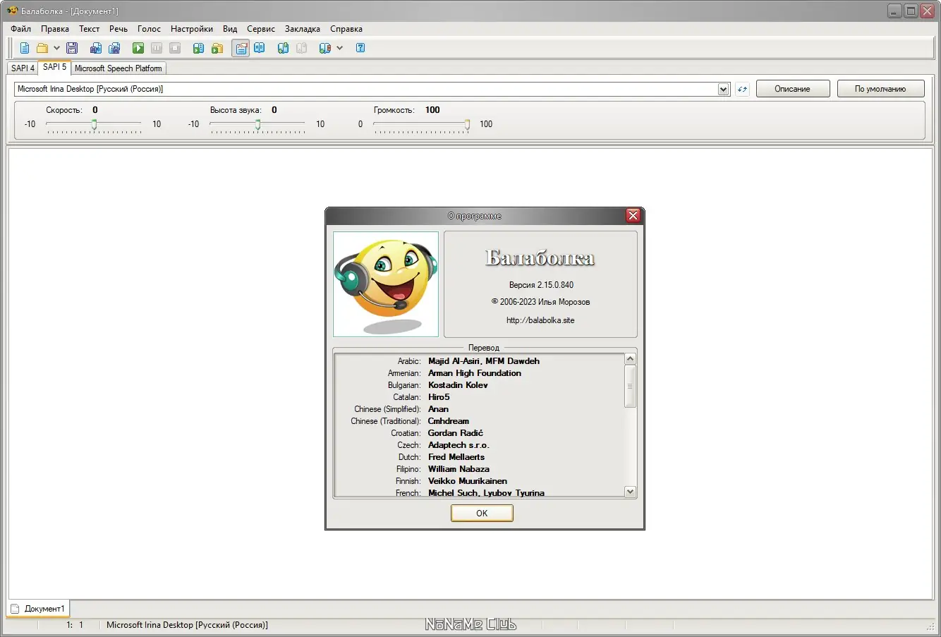 Программа Balabolka превращает текст в устную речь, используя установленные на компьютере голоса. Поддерживает множество форматов документов и позволяет сохранять озвучку в аудиофайлы с синхронизированными субтитрами. Идеально подходит для обучения, проверки текстов и комфортного прослушивания длинных документов.