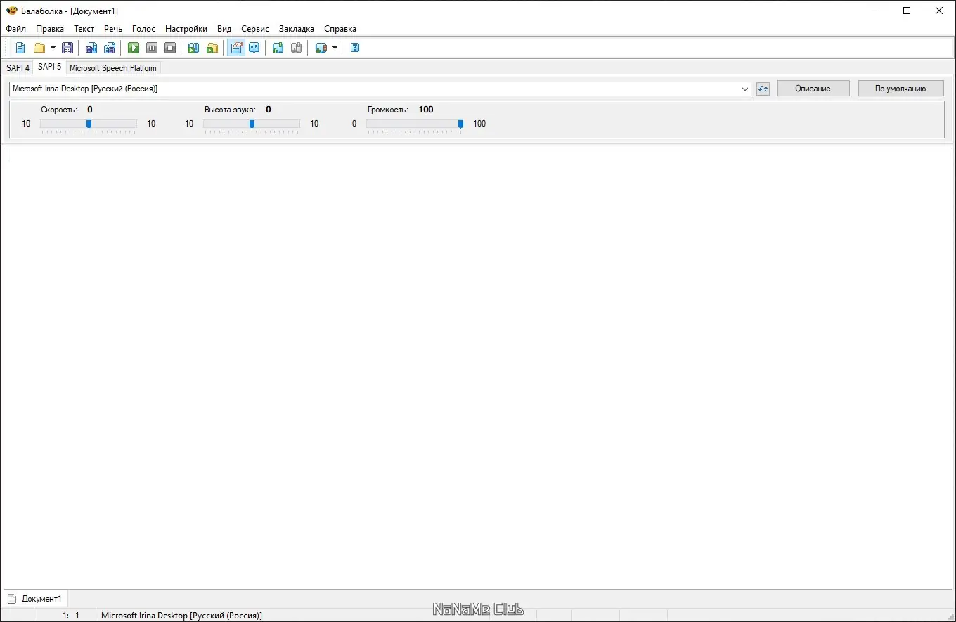 Balabolka — это бесплатное приложение, разработанное для чтения текста вслух на компьютере. Оно использует синтезаторы речи, доступные в системе, и предоставляет широкие возможности по настройке процесса озвучивания. Программа подходит как для повседневного использования, так и для создания аудиоматериалов из текстовых источников.