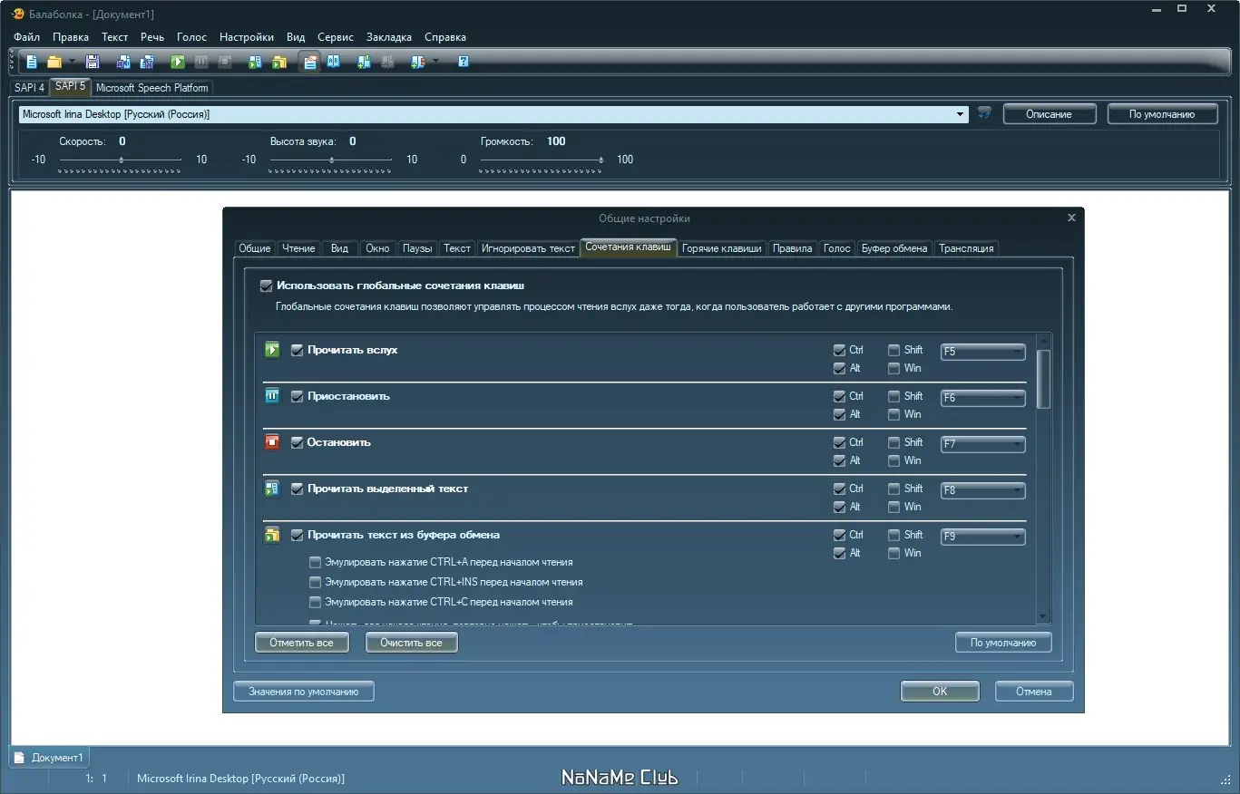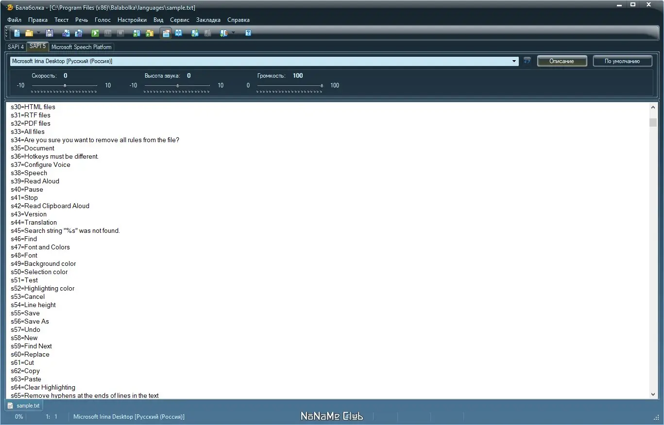 Программа совместима с различными версиями Microsoft Speech API и может использовать как локальные, так и сторонние голосовые пакеты.