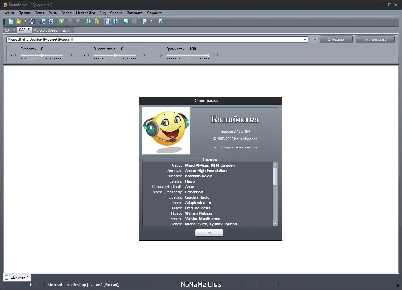 Balabolka — это удобная программа для чтения текста вслух с поддержкой множества форматов документов и настраиваемыми голосовыми параметрами. Она использует доступные на системе синтезаторы речи и позволяет озвучить текст из файлов или буфера обмена, сохраняя результат в аудио или синхронизированных субтитрах.