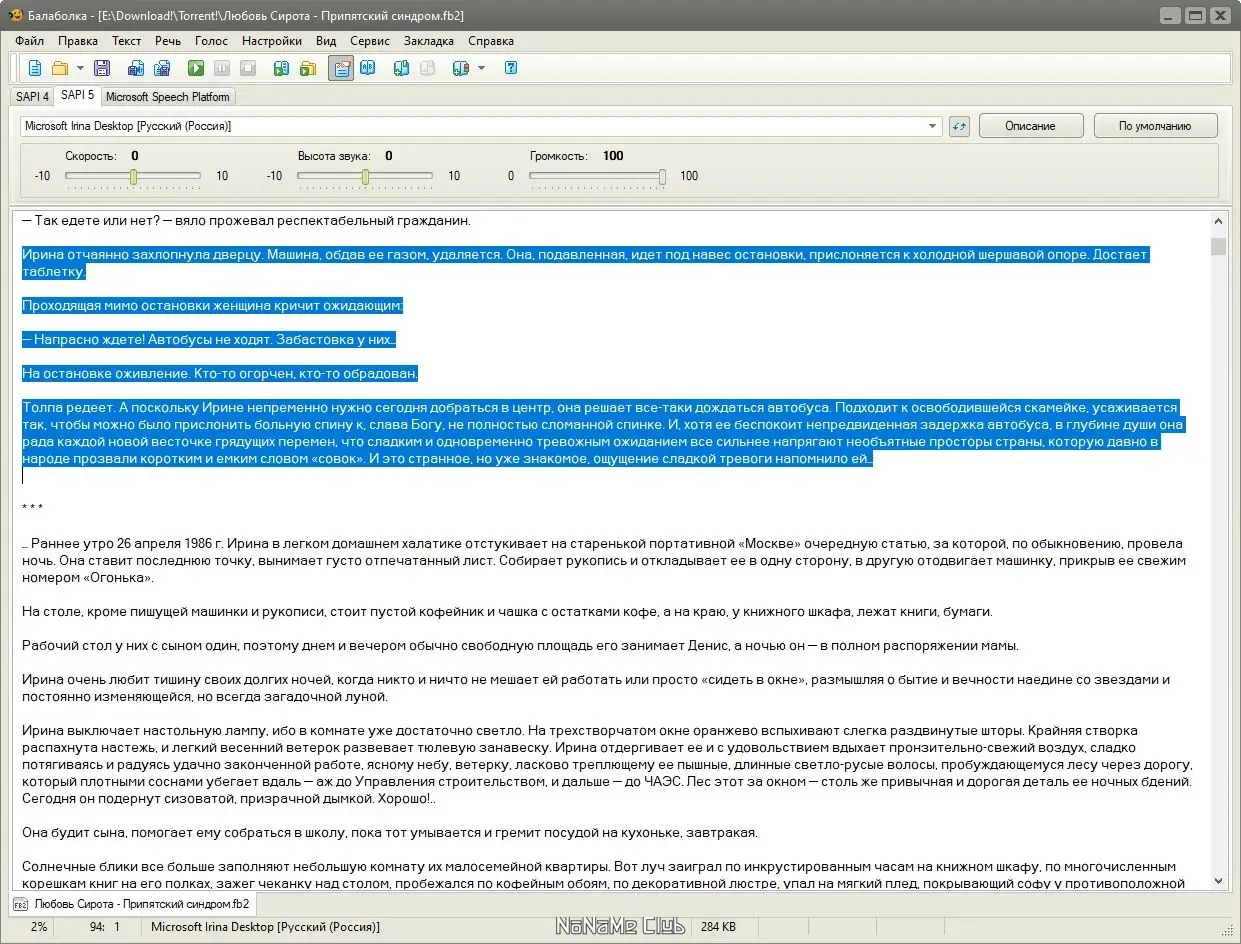 Работа с Balabolka