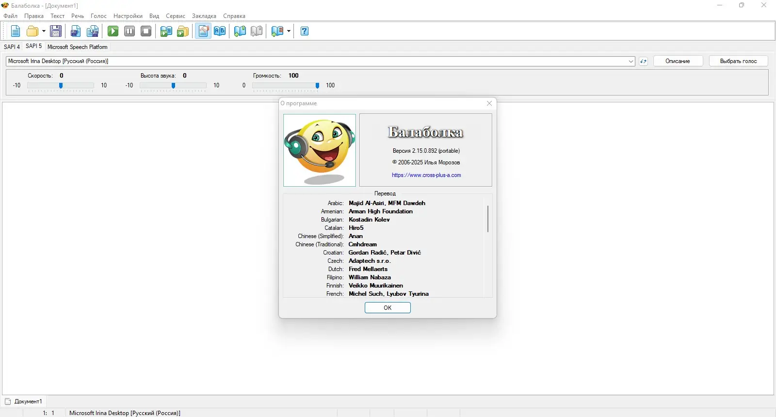 Balabolka — это универсальная программа для озвучки текста, поддерживающая множество форматов документов и позволяющая прослушивать содержимое файлов с помощью встроенных или установленных голосовых движков. Приложение работает на базе технологий синтеза речи и предоставляет широкие возможности по настройке произношения, скорости, тона и внешнего вида текста. Поддержка портативного режима и совместимость с различными версиями Windows делают её удобным инструментом для повседневного использования.